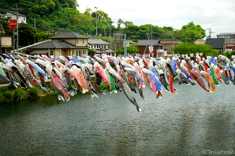 地元有志による300ものこいのぼりを川の上に泳がせ、