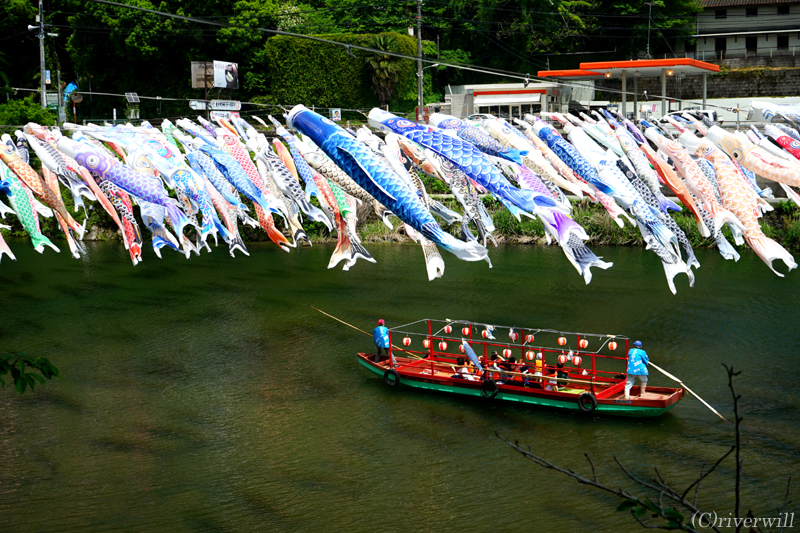 300もの鯉が泳ぐ空の下を屋形船で渡る情緒豊かな風景