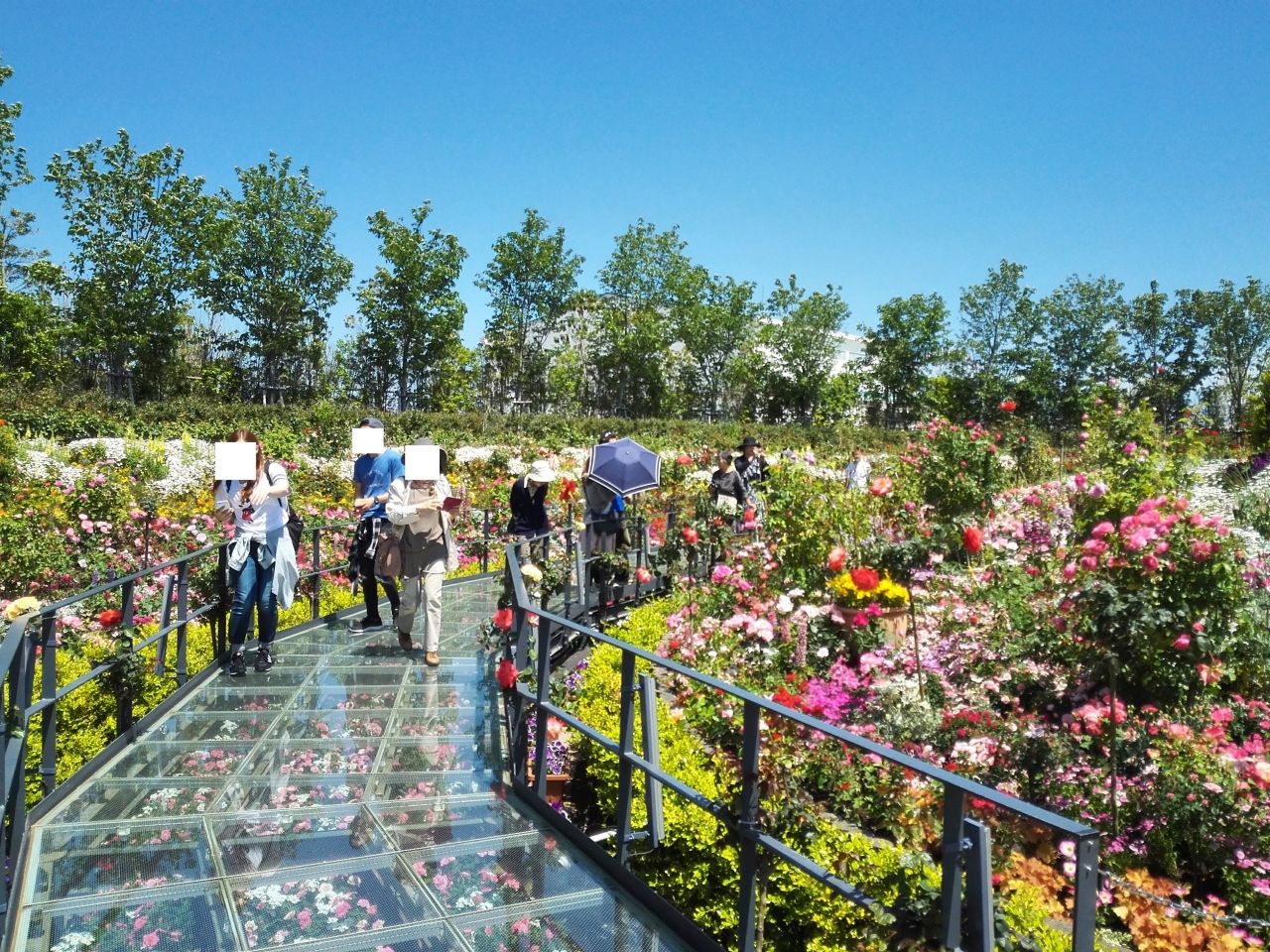 ガラスの回廊では、橋がガラスになっていて、バラの上を歩いて行けたり、バラのアーチをくぐったりと、バラの飾り方に工夫がされているところが良かったです。