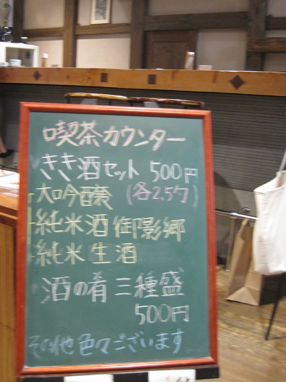 蔵元ショップの中に喫茶カウンターがあり、有料で飲み比べやおつまみが楽しめます。頼みませんでしたが運転する方の為に甘味もあるらしいです。