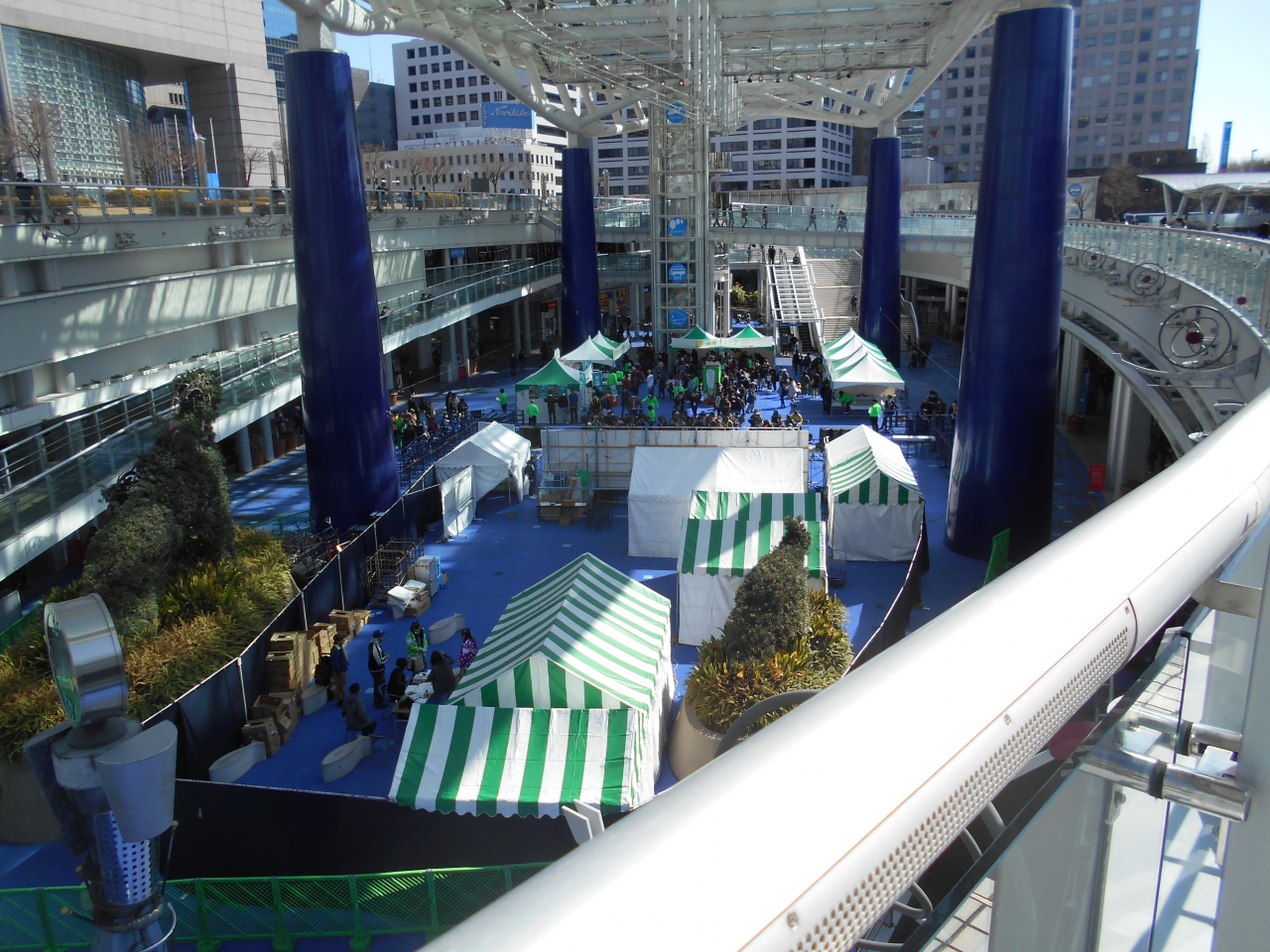 名古屋の繁華街・栄のオアシス21にある広場です。半屋外施設で屋根が水の宇宙船という浅く水の張られたプールになっています。太い柱がマリンブルーで広場になっていて、訪れた日にはイベントが開催されていました。 また、地下街とつながっていてアクセスいいです。