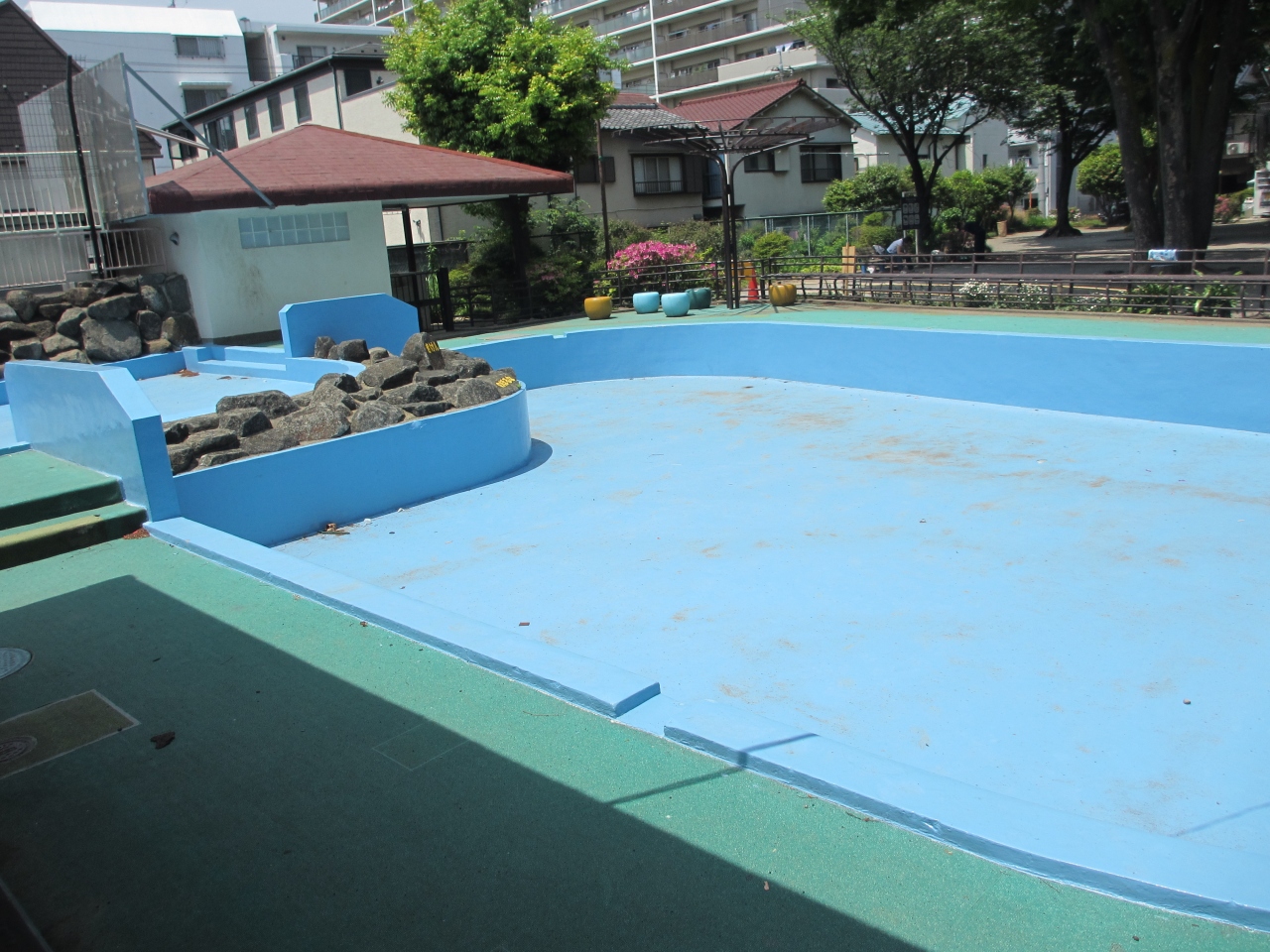 三田線・本蓮沼駅から2分ほど、国道17号線から100mほど中に入った生涯学習センター・まなぽーと大原の隣に建つ公園です。園内にはブランコや滑り台の他、こどもの池と名付けられた幼児や小学生向けの小さな水浴び用プールがあります。夏のみの開設ですがシャワーや更衣室もあり、子供たちには楽しみな施設だと思います。