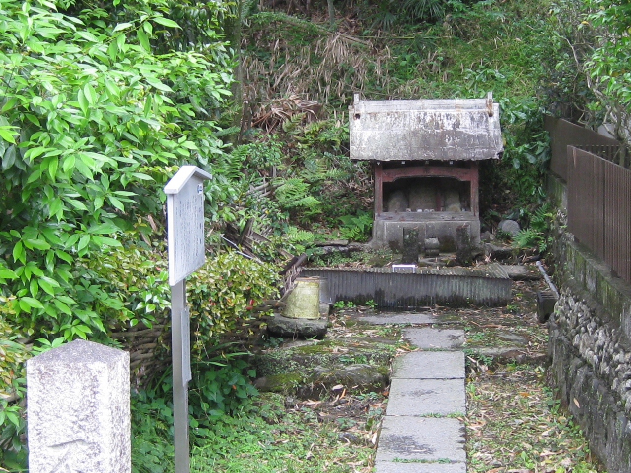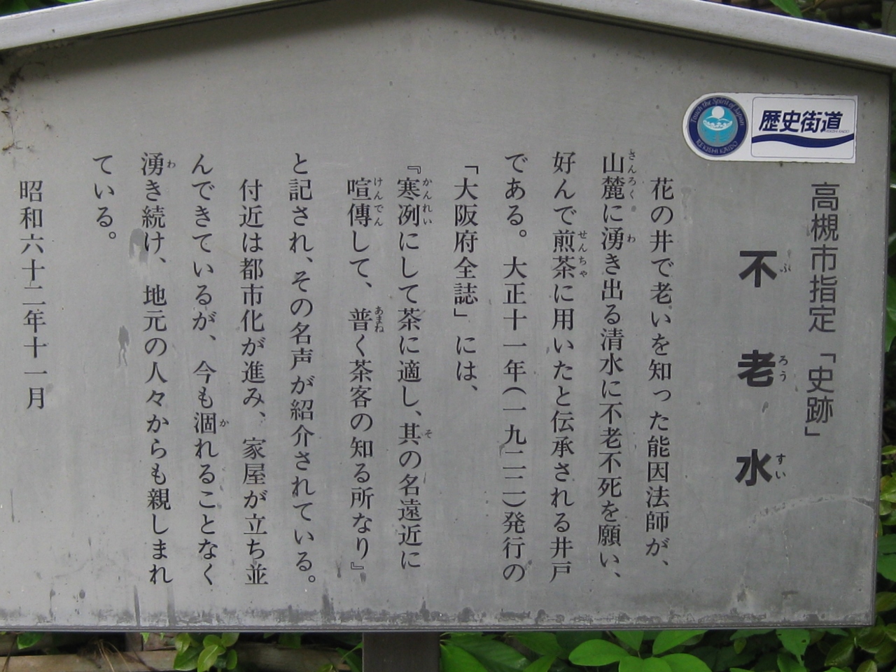 高槻市古曽部の住宅街にある井戸。平安時代の中期の歌人能因法師が不老を願って煎茶に使用したとされる名水の井戸で、この付近には法師にまつわる伝能因法師墳や文塚などがひっそりとあります。この井戸も日吉神社の前を横切り住宅街の中を行くとひっそりと竹藪の中にあります。高槻散策モデルコースにもなっています。