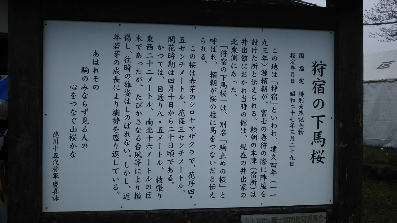 何度も富士へ行きながら、下馬の桜だけは行っていませんでした。かなり歴史のある大木と聞いていたので、桜の花が咲く季節に行かなければ意味がないと思っていたかもしれません。