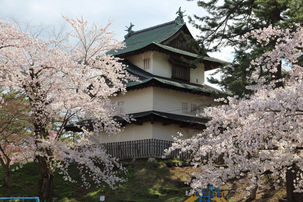 弘前に藩政時代から残る建造物であり、且つ弘前のランドマークです。鷹揚公園(弘前公園)の中心に鎮座しています。というか、鷹揚公園が弘前城の城郭なわけですから当たり前ですが。JR弘前駅からは1本道で来られますが、少々距離があります。土手町循環バスか、ためのぶ号に乗って市役所前で降りれば目の前に鷹揚公園がありますから、そちらの方法をお勧めします。
