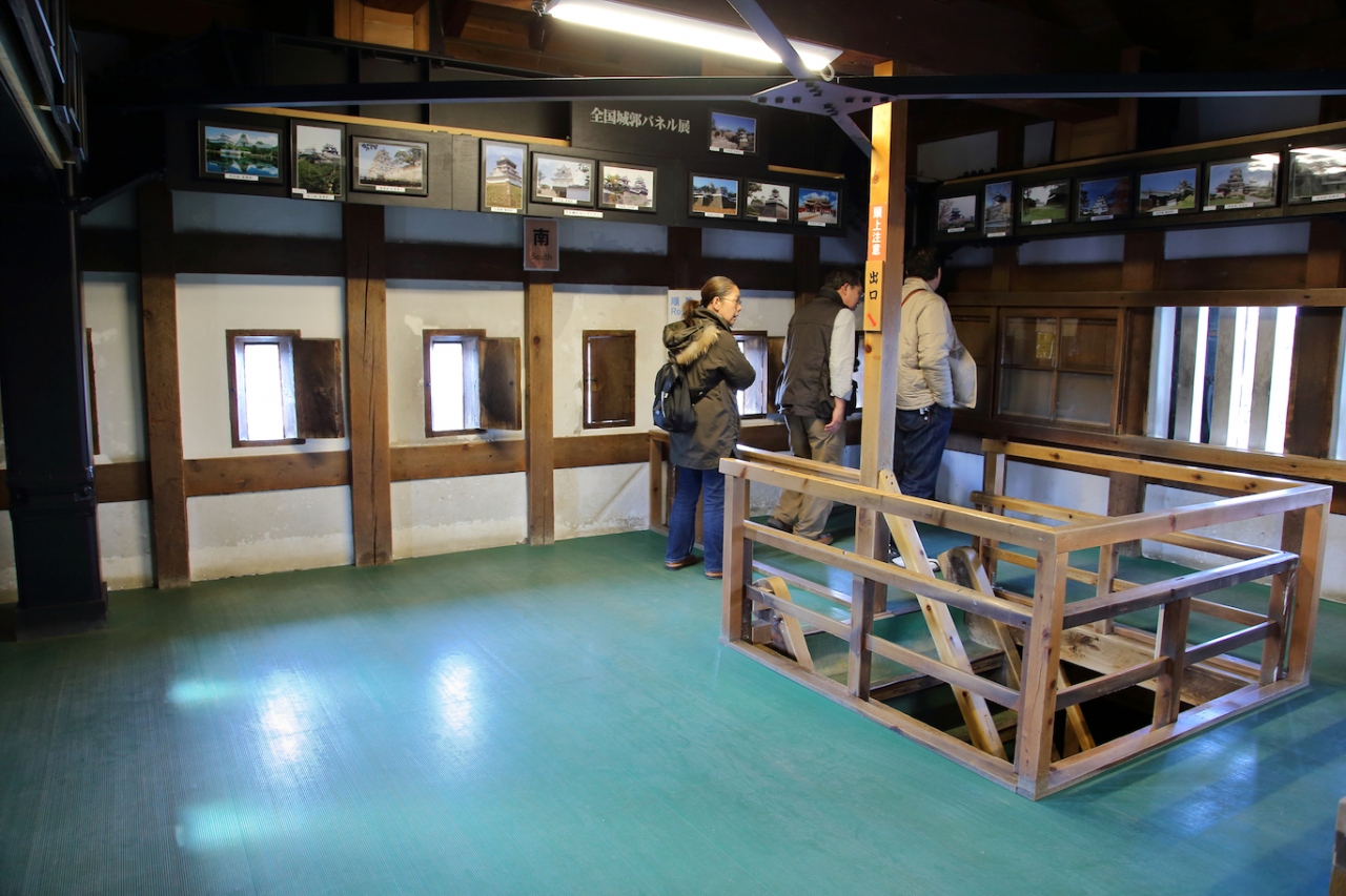 弘前城はかなりの数の建築物が残っていて、城門や櫓、天守が藩政時代のまま残されています。店主は現存天守の中では最北端になります。意匠が特別に優れているわけではありませんが、どれも歴史の風格を漂わせています。ただ、残念ながら天守以外は内部を見ることは出来ません。また、天守も文化・文政時代に再建されたもので、天守とは言わずに御三階櫓と呼んでいたそうです。実際、名前の通り華美な装飾は無く、内部も質素です。普通、天守の最上階は見晴らしが良いものですが、こちらには矢狭間くらいしか無いので展望は望めません。ですが、そのことが返って防衛施設としての雰囲気を高めています。なお、天守のある本丸部分は有料となっています。
