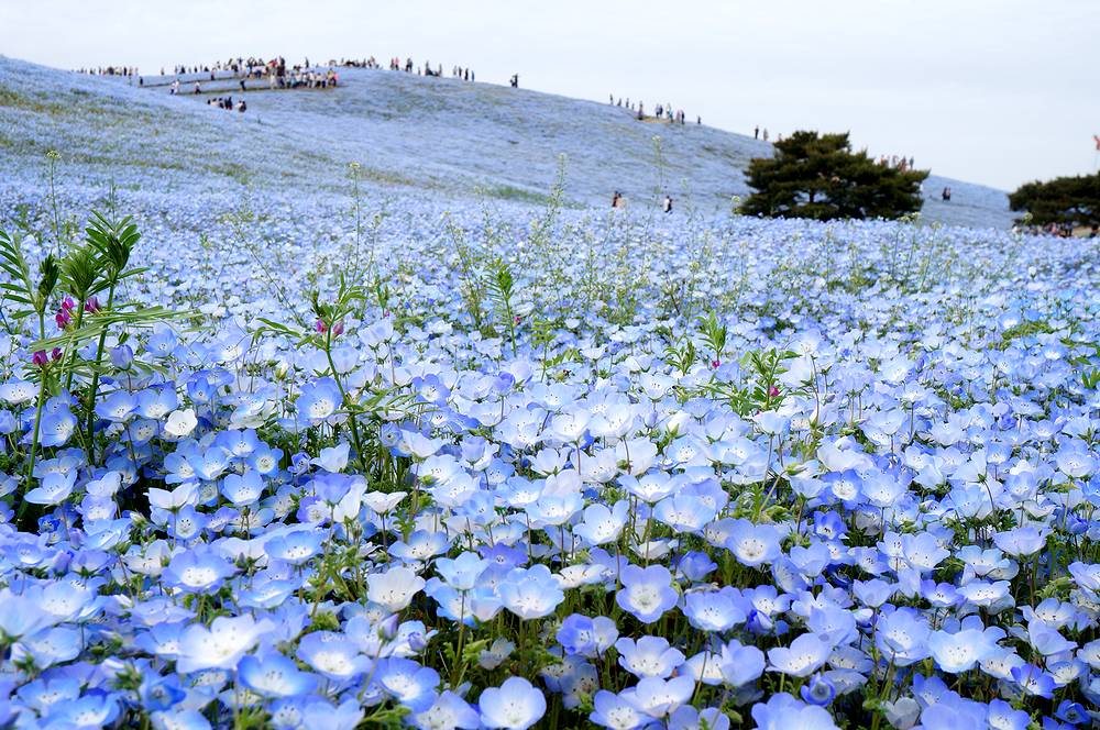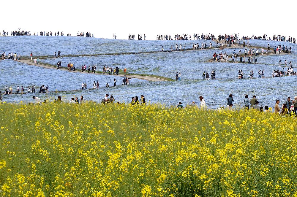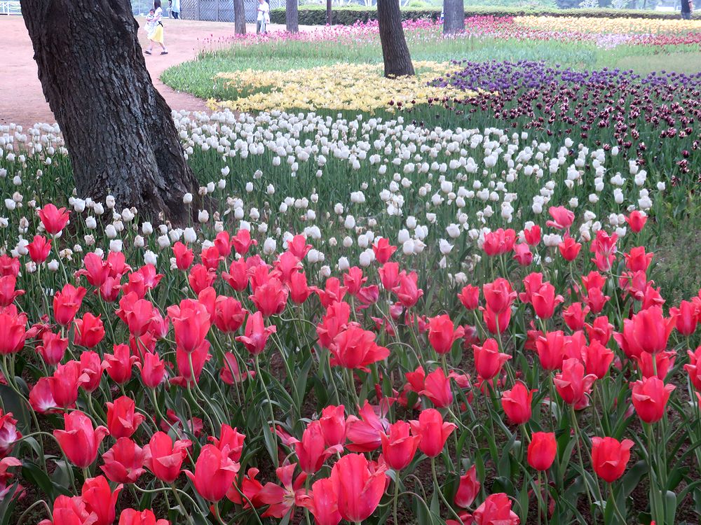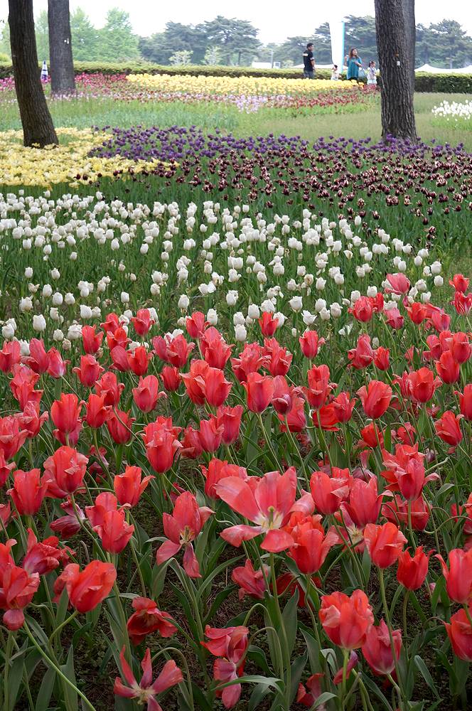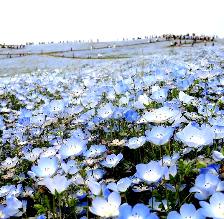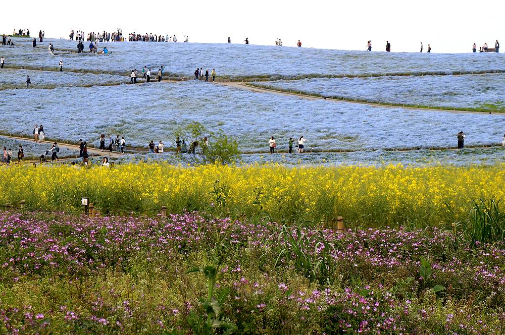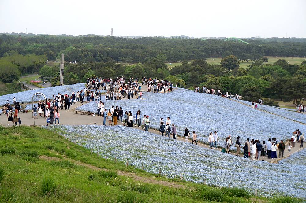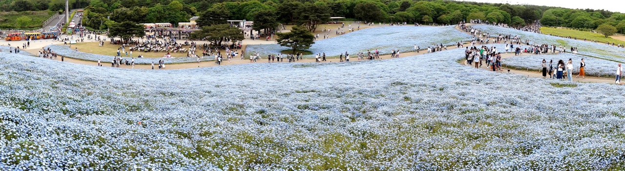 連休最終日の日曜日の午後2時ごろ公園入り口に着きましたが、ネモフィラ見学には便利な西駐車場へはまったく待つことなくスムーズに駐車できました。あまりにもすんなりと駐車できたのには、驚きました。途中の道もまったく渋滞にあいませんでした。あまり混んでいたら翌日早朝行こうと思って大洗にホテルを予約してあったのですが、連休後の開園は9時半に戻るということを知り、急遽予定を変更し、混雑覚悟で7日の午後にやってきたのでした。駐車場はすいていたのですが、ネモフィラの丘は人の波が続き、閉館30分前の4時半になっても減ることはありませんでした。混んでいてもネモフィラの花はかわいくきれいで、何よりも規模には驚かされます。チューリップも本場オランダにひけをとらないすばらしさでした。混雑覚悟で一度訪れる価値ありです。
