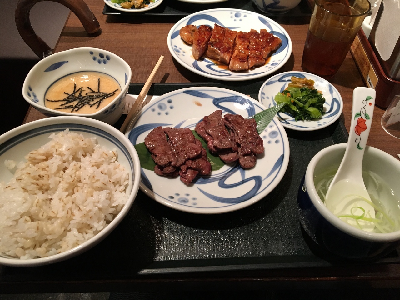 ねぎし初訪問。ちなみに牛タンをしっかり食べるのは初めてかも。相方はしろ4セット。ボリュームありすぎて食べきれず。私はがんこちゃんセットにとんてーきを単品。麦飯はおかわり自由。トロロ多いので2人で頼むなら1人はトロロ抜きでいいかも。