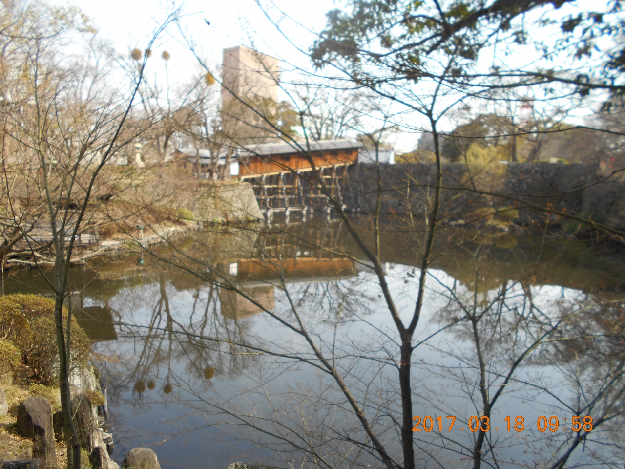 紅葉形庭園には 珍しい御橋廊下という 藩主の娯楽の場であった西の丸と 藩政や生活の場であった二の丸の間にかけられた橋で 藩主と側近だけしか渡ることができない裏道として使われたので 藩主の姿が見えないように囲われていました。この御橋廊下が 紅葉渓庭園のアクセントにもなっているように感じます。