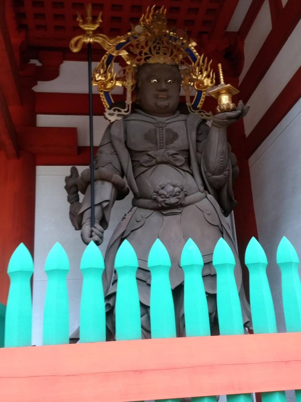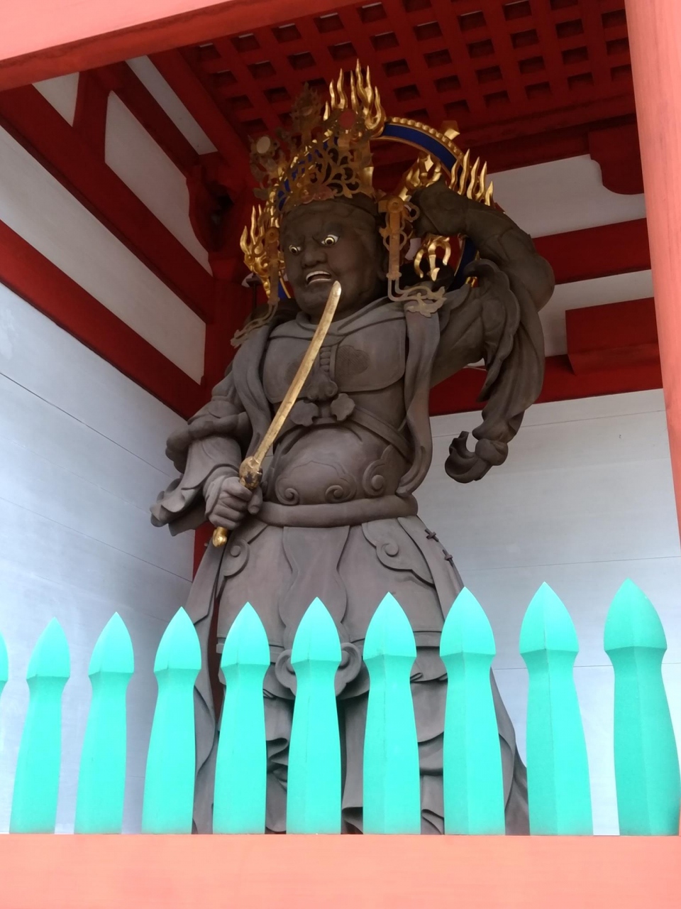 壇上伽藍の入口にあり、伽藍の正門で金堂の手前にあります。入口両脇には持国天像と多聞天像、中門の裏側には増長天像と広目天像があり四天王像と言われる仁王像で、門に4体の像があるのは珍しいとおもいました。仁王像も朱塗りの門も綺麗て清らかで落ち着いた気持ちになり、門を入った右手に対面桜と云う名前がついた桜があり満開で、絶対に観る事をお勧めします。