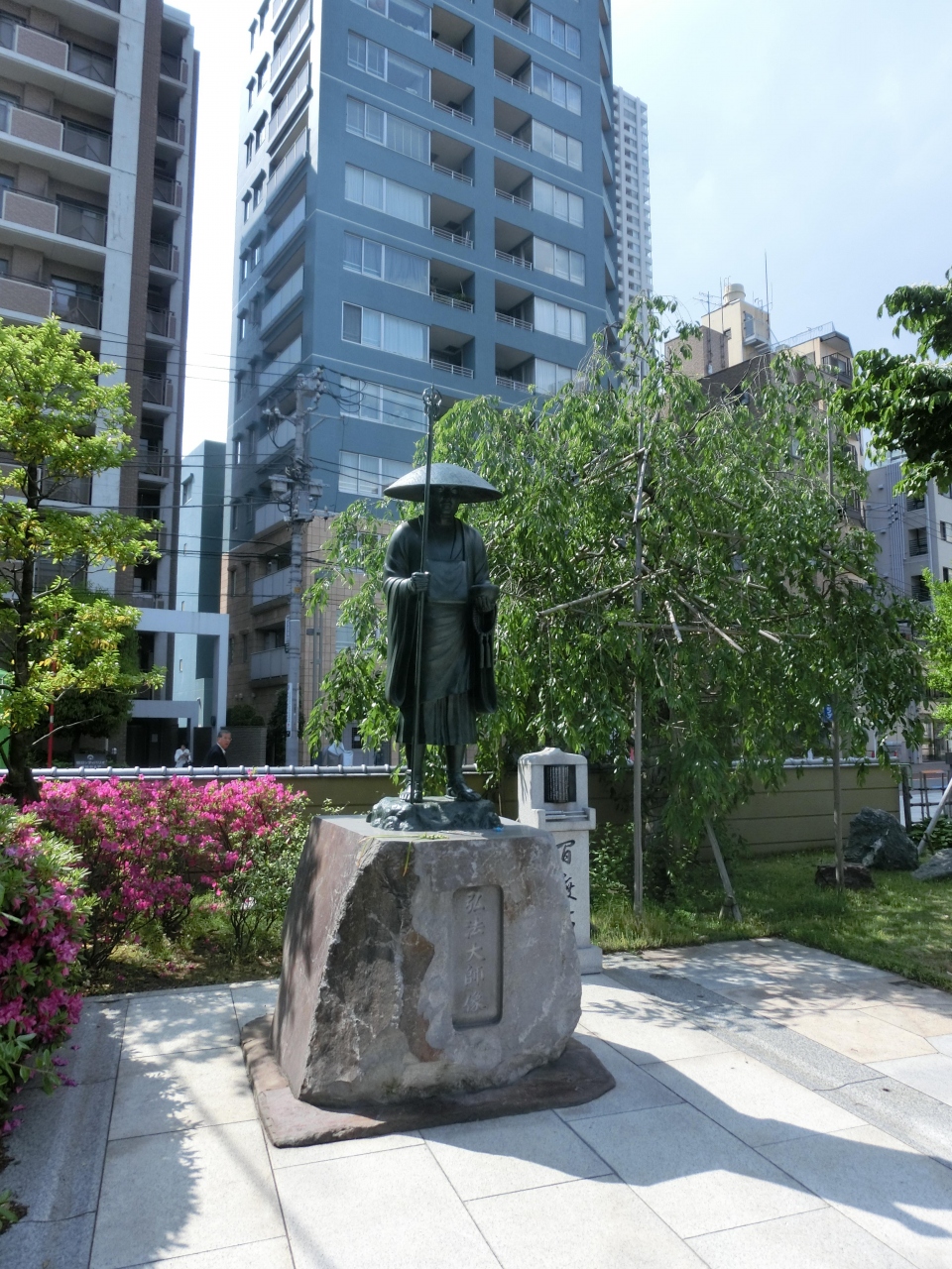 別院の山門を入ってすぐ、右手奥に大師の全身像がある。