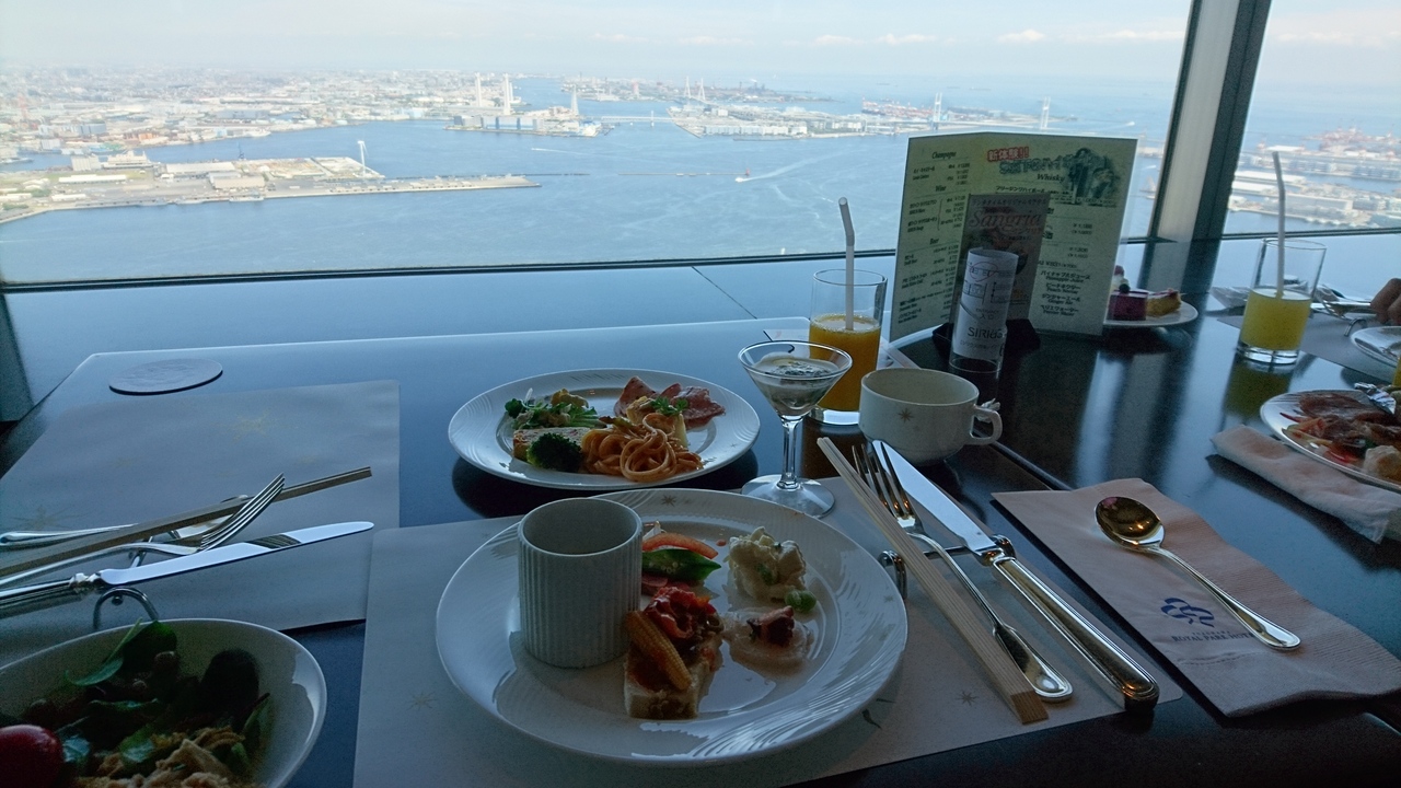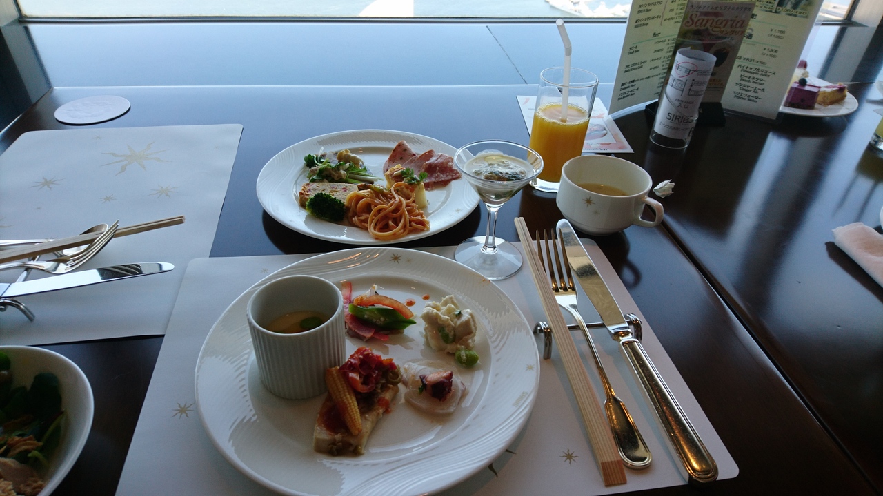 地方に住んでいる友人がGWに遊びに来るとのことで、1か月前に窓側で予約をしていました。眺望が良いのでこちらのレストランでは必ず窓側を予約するのですが、ランチの時はいつもビュッフェ台側の窓側ばかりでした。しかし今回は初めて入口を入って左手の、席数の少ない窓側を用意していただきました。ビュッフェ台側の窓側席はすぐ真後ろにも沢山の席があり賑やかですが、今回の席は周りを気にすることなくゆっくりすることができて、皆大変満足しました。お料理は、今回はメインディッシュにリブロースのローストビースとフォアグラのブリュレが一人に一皿ずつ付きました。ビュッフェ台のお料理は、いつもはぐるっと1周回ると全部お料理が違ったような気がしますが、今回は同じ料理がいくつか並んでいました。デザートは、最初に写真を撮らせてもらったので覚えているのですが、食事を終えデザートを何度か取りに行きましたが補充されないものが何種類かあったので残念でした。GWということで普段よりお値段が高かったので、お料理の数とデザートの補充に関しては残念な感じもしました。友人が誕生日ということもあり記念撮影をしていただき、帰るまでにケースにいれてプレゼントしていただいたのは嬉しかったです。