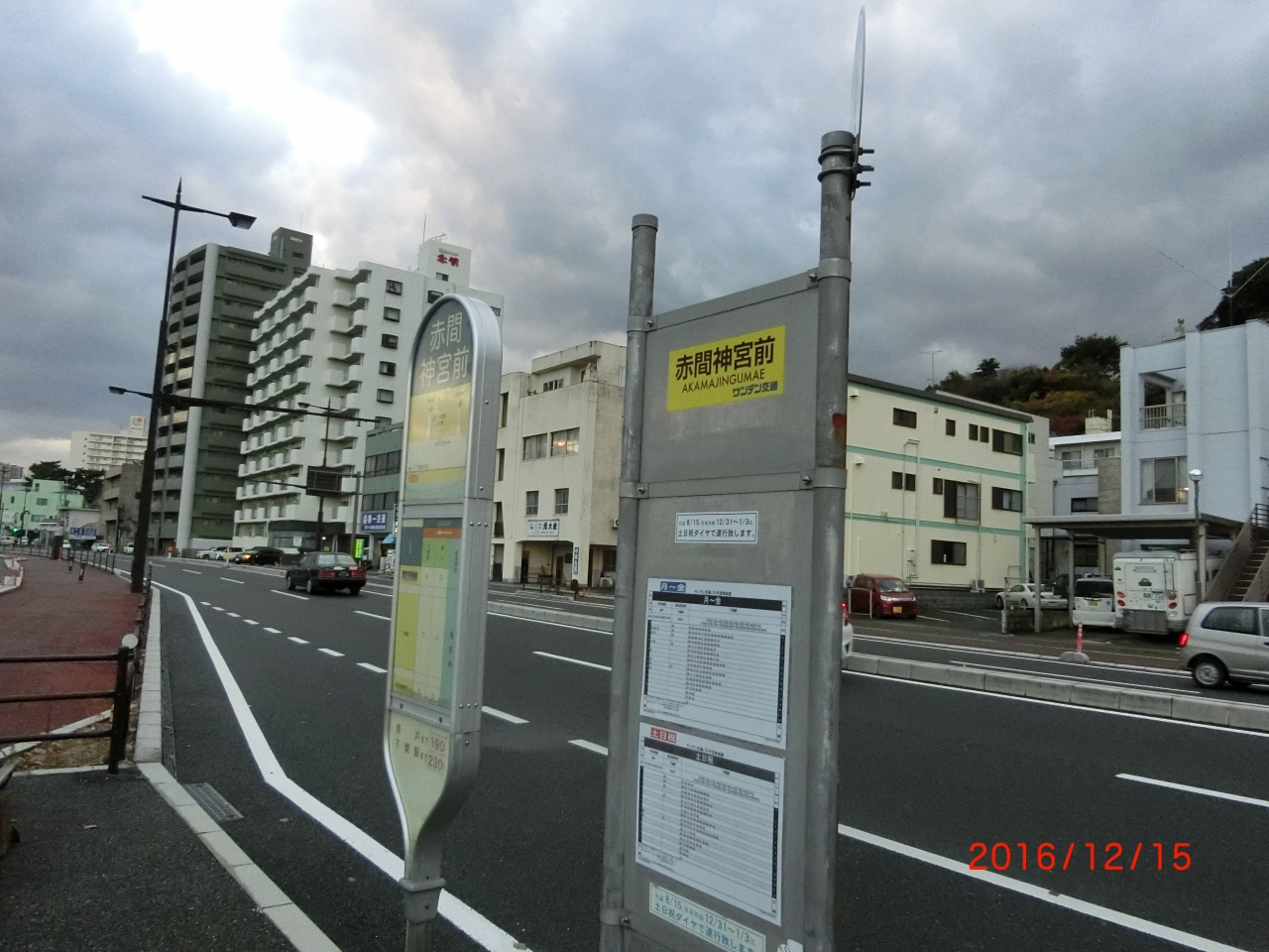 赤間神宮の前の阿弥陀寺公園の前にバス停があり、ここからバスで下関駅まで行きました。