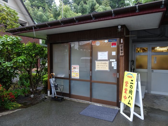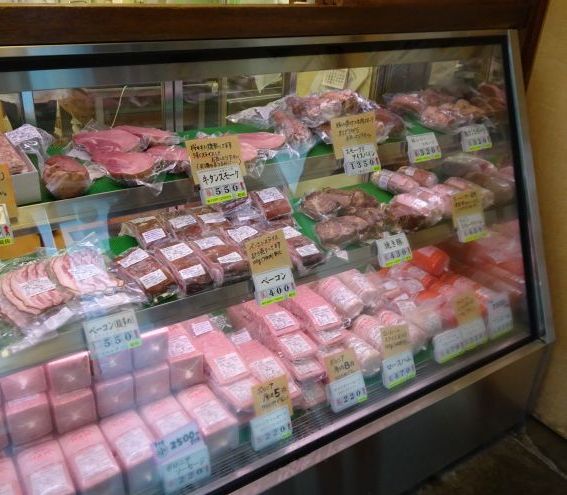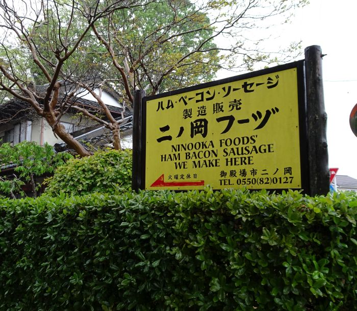 ハム(ソーセージ)で有名な二の岡フーヅ。さぞかし立派な店舗だろうと思ったら、間口一間ほどの、工場の隅で阪大しているような形態でした。