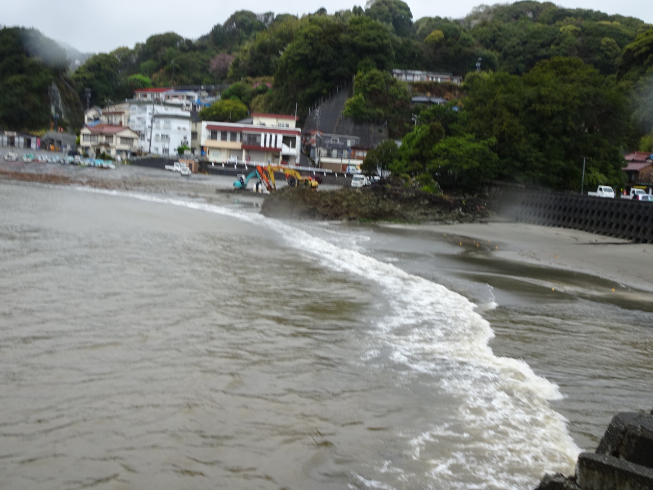 4月の今井浜は夏のお客さんを迎えるために充電している感じでした。特に雨が降っていると砂浜には誰もおらず淋しい限りです。雨が降って川の泥水がビーチに流れ込んで泥んこ水の海になっていました。夏が到来すると青い海に生まれ変わることと思います。