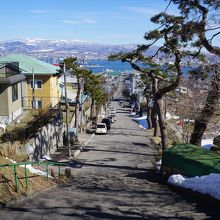 幸坂は、東側から数えて4番目。千歳坂の次の坂です。旧ロシア大使館や最後は山上大神宮まで。上るにしたがって、急になって行くような感じで、私もふうふう言いながら上りました。しかし、その分、坂の上からの眺めは抜群。細く長く続いた先に函館湾が見える景色は、有名な八幡坂の景色にも負けていないかも。もう少し有名になってもいいと思います。