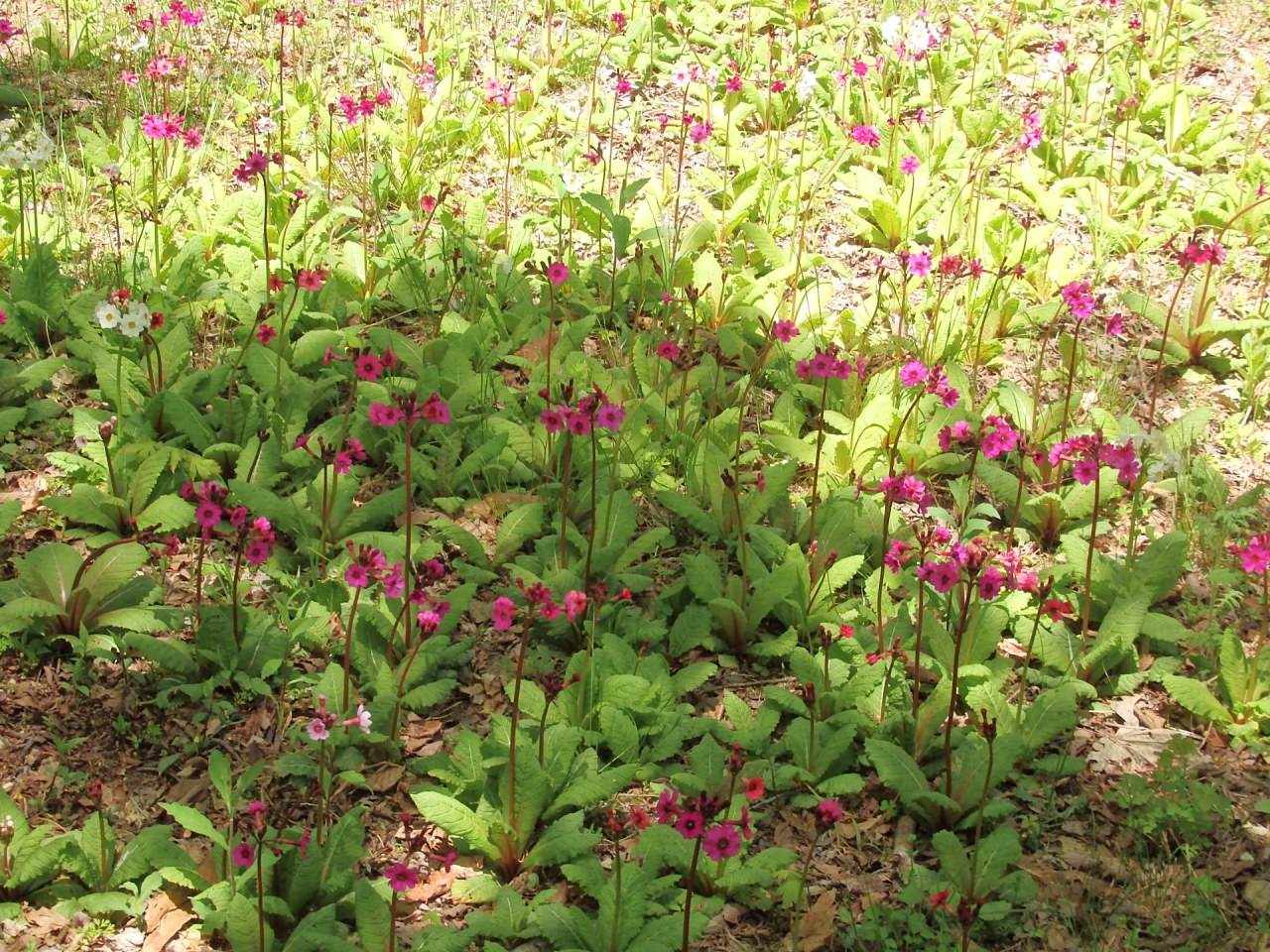 千手ケ浜バス停より中禅寺湖に向かって歩くとクリンソウ群生地が2ケ所ある。朱色、白、ピンクのクリンソウが満開で迎えてくれる。こんなに多くのクリンソウの花を見るのは初めてで感激です。お寺にある三重塔、五重塔の最上部に設置されている九輪に似ているところからこの名前が付きました。平地を1時間ほど散策するだけなので、山に登らない人でも見られます。ナナカマド、ギゴケ、レンゲツツジ、ズミ、ヒメイチゲ等も見ることができました