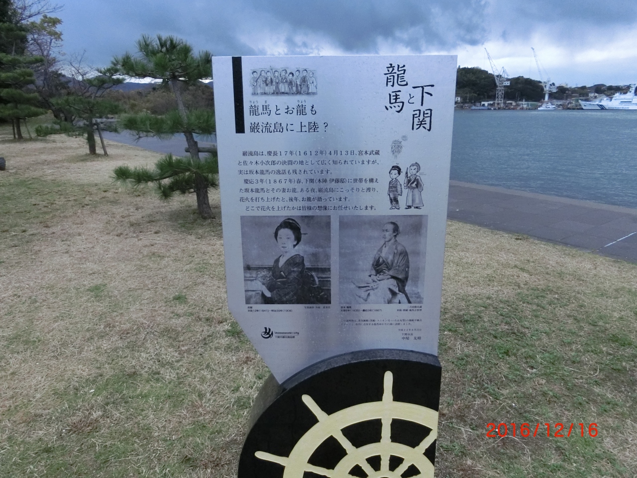 巖流島の展望広場には強そうな武蔵と小次郎。