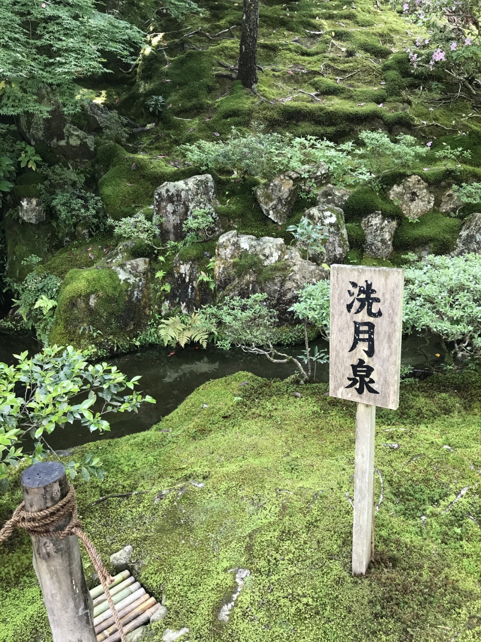 銀閣寺にある洗月泉です。月が泉に映し出された時に泉のさざ波がまるで月を洗っていりように見えることからその名がついたそうです。現在ではパワースポットとされていて人気があるとの事です。南東部に位置しています。