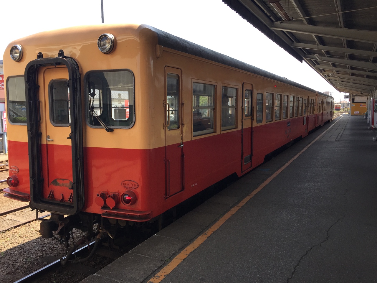 房総半島横断の前半戦。五井駅で房総横断乗車券を購入。1,700円也。バラバラに買うよりもかなりお得。乗車後、逆方向には戻れないが…。いすみ鉄道に乗り継ぐ上総中野駅まで1時間強。嵐の相葉くんが座った席の表示があったりして、地域外の客を意識しているのはわかるが、いかんせん車両の老朽化が著しい。上総中野駅での乗り継ぎ時間がほとんどないという配慮ゼロのダイヤにも要注意。