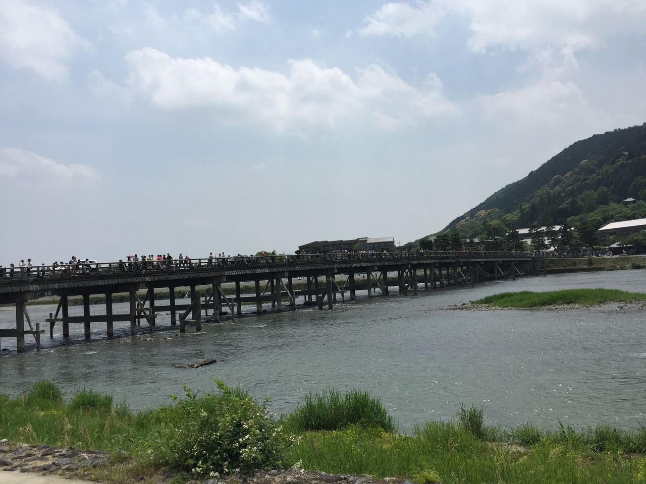 穏やかな川の流れの保津川と、包み込むような嵐山の大きさと、この橋が一体となった景色は訪れる度に写真に撮りたくなるほど、素敵な景色です。