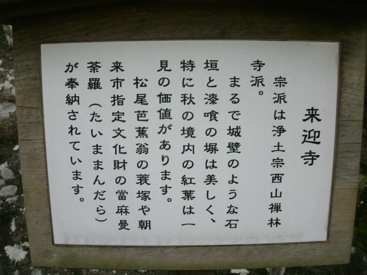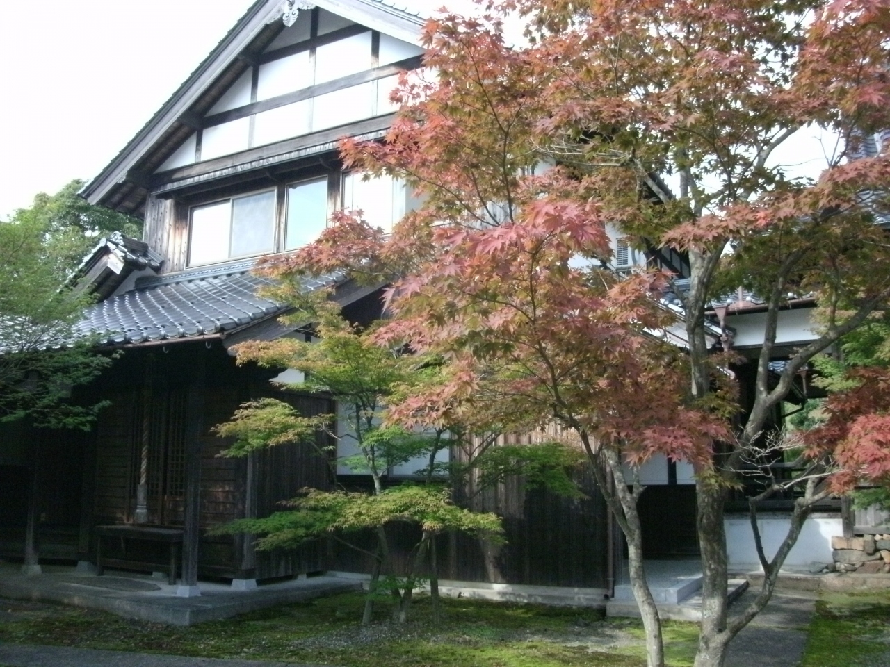多くのお寺が建ち並ぶ生野寺町通の西端にあります。お城のような石垣と漆喰壁に守られた生野にあっては大きなお寺さんです。境内には、全国に4ヶ所しか無いという芭蕉の蓑塚(詳細は添付写真を参照ください)が句碑と並んで建っています。訪れたときは10月の中旬で、境内の紅葉が色づき始めたばかりでした。紅葉の盛りには石垣や漆喰壁と相まってよりきれいな景色を観ることができると思いました。