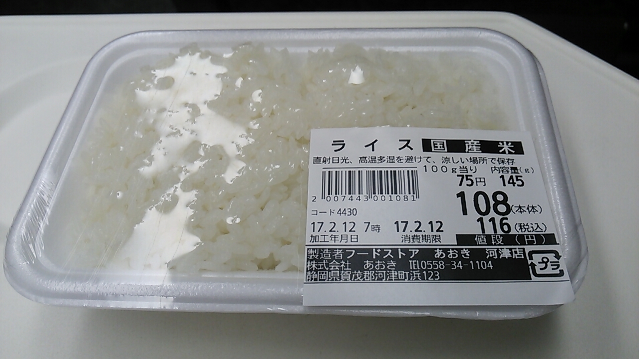 いわゆる普通の御飯ですが、基本的に商品の値段が高めのこのスーパーにしては東静岡リーズナブルで、100㌘あたり75円でした。