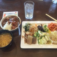 野菜中心のメニューだが、4種類のカレーがあり、ご飯はがっつり食べられる。