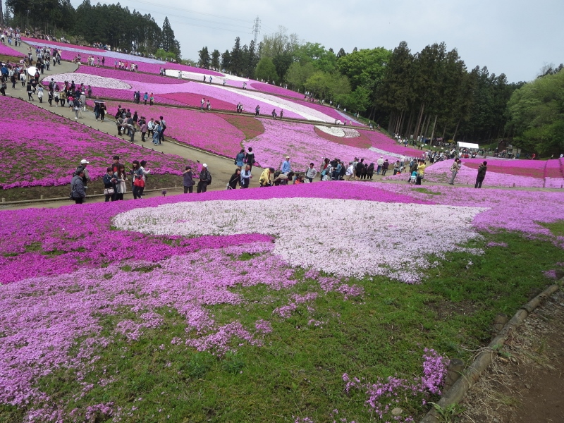 ちょうど芝桜が見頃だったので、見とれてきました。色とりどりの沢山の芝桜が植えられていて、本当にきれいです。中でもハートマークが浮き出ている辺りは、一緒に写真を撮っている見物客が多くいました。芝桜のシーズンだけは有料で、お土産屋や食べ物のテントもたくさん並んでいました。
