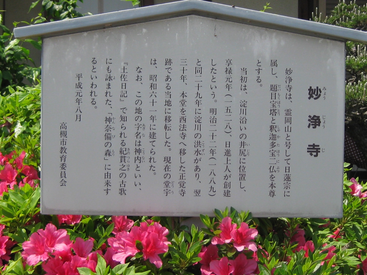 阪急上牧駅から西へ旧西国街道沿いに建つ日蓮宗の寺院。16世紀初め日進上人により創建されたと言われ、元は淀川沿いの井尻にあったが明治期の二度の水害で本堂を現在の場所に移したそうです。旧西国街道沿いには史跡が多いですがこの寺院は境内も小さく歴史的な物を感じません、観光で巡る所ではないです。