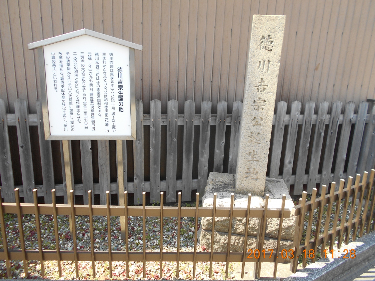 この地で紀州藩第二代藩主の四男として生まれ 兄たちが次々と亡くなったため 紀州藩五代藩主となり、将軍綱吉より一字を賜り吉宗と改めたということです。