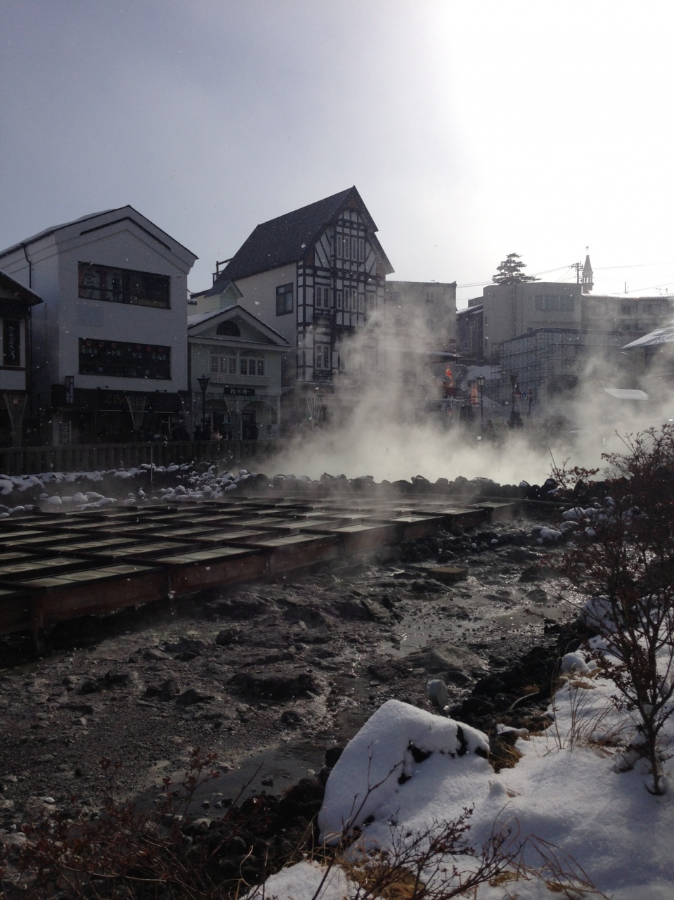 草津温泉といえば、この湯畑でしょう。ここを中心として、温泉街が広っており飲食店やお土産屋さんがあります。ものすごい湯量で、もくもくと湯気があがっており、草津に来たなぁ~っと実感できる場所です。週末となると、人混みであふれます。