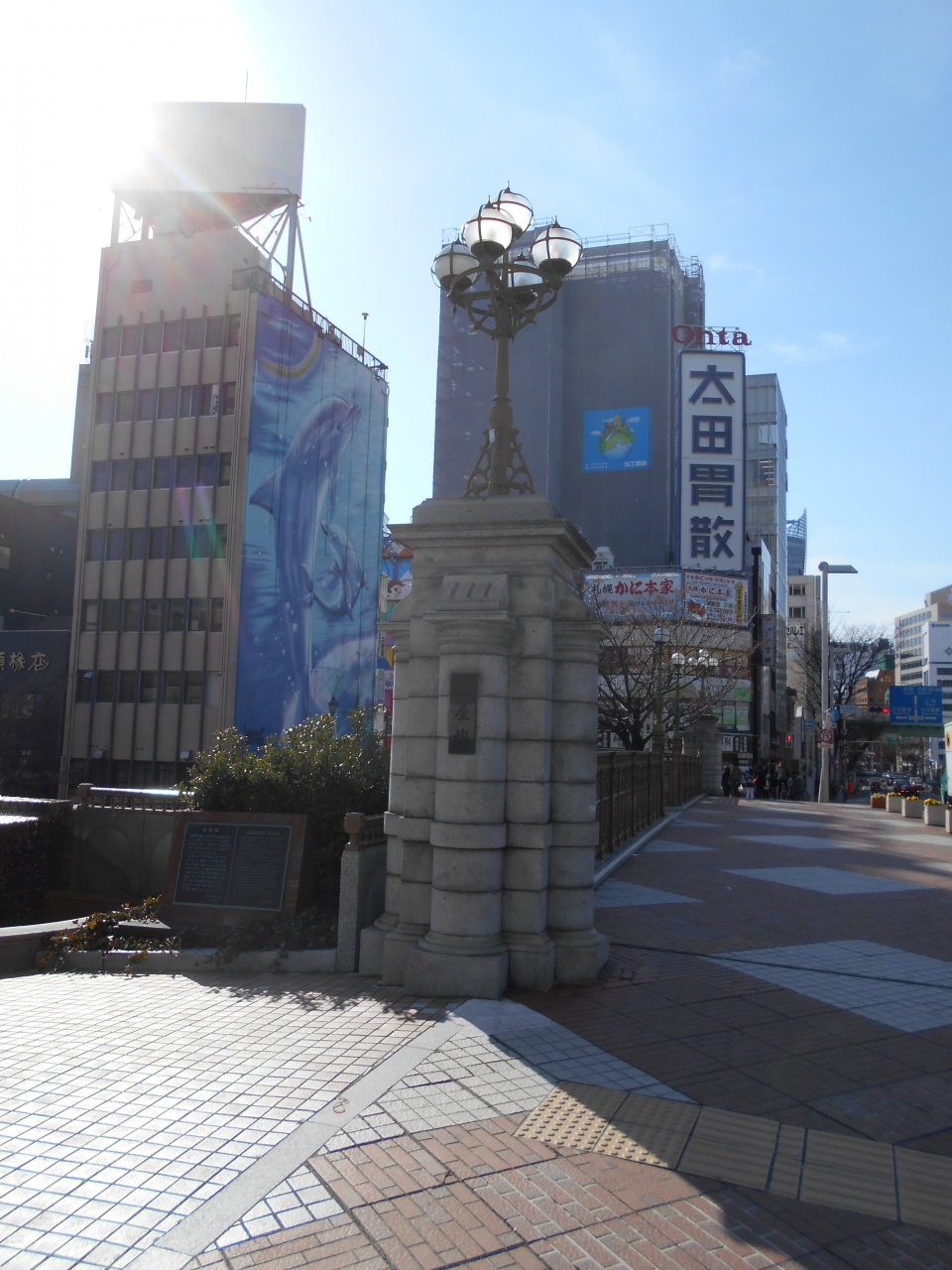 伏見駅から名古屋駅へ行くとき、納屋橋を通りました。 堀川に架かる短い橋ですがデザインは重厚な感じです。石造りの橋柱の上には凝ったデザインのランプが載っています。川の片岸には遊歩道が設置されていて、橋の端から降りていくことができました。