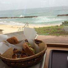 イートインスペースからは日本海の眺めがよく、イルカの群れがみえることもあるとか。