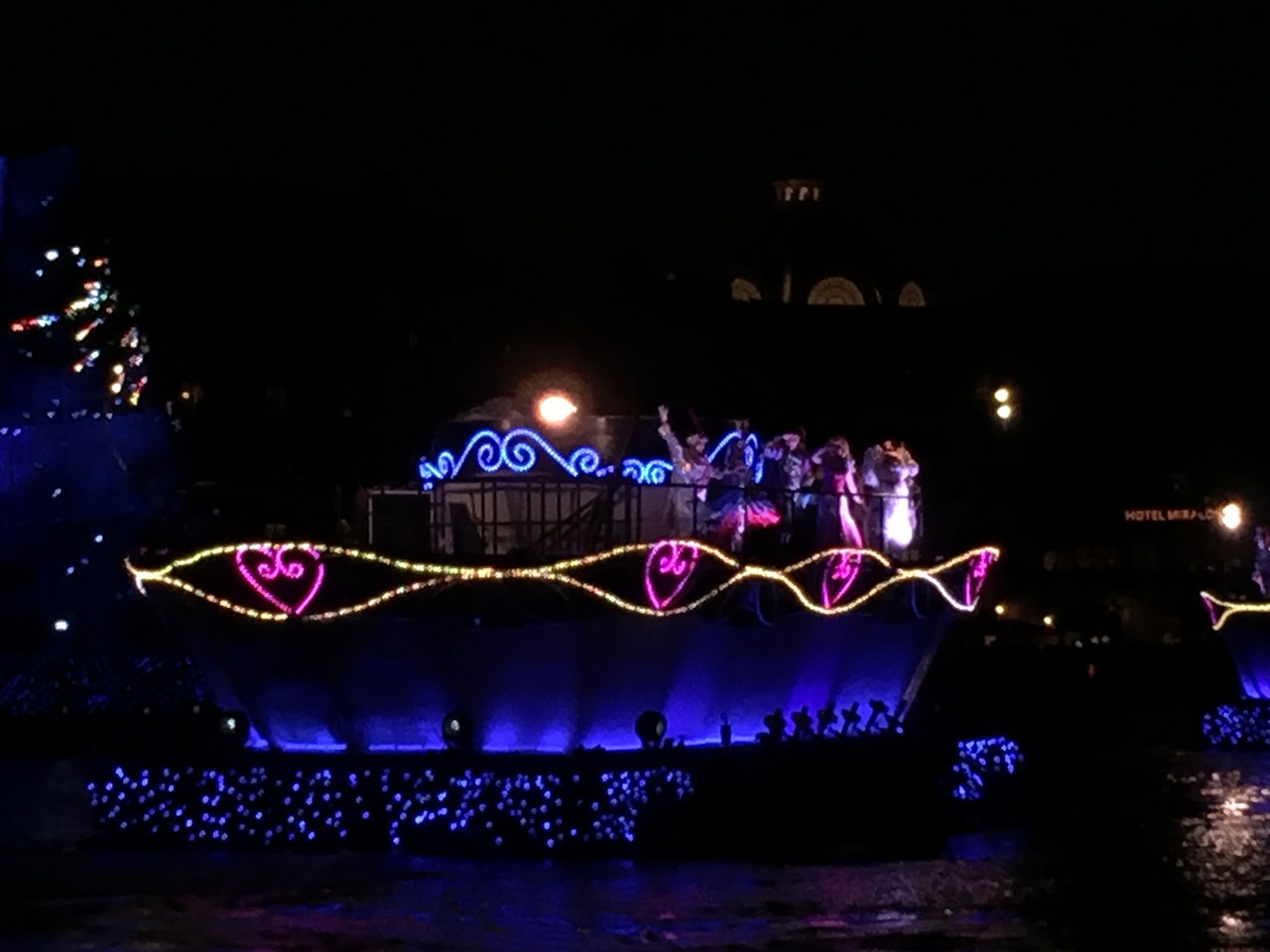 週末の夜に鑑賞しました。この日はまだまだ気温が高くない日だったため、ショーを待っている間 かなり風が強く寒かったです。見る場所や風向きによっては水や花火のチリが飛んでくる場合もあるのでキャストの方に確認してみることをおすすめします。