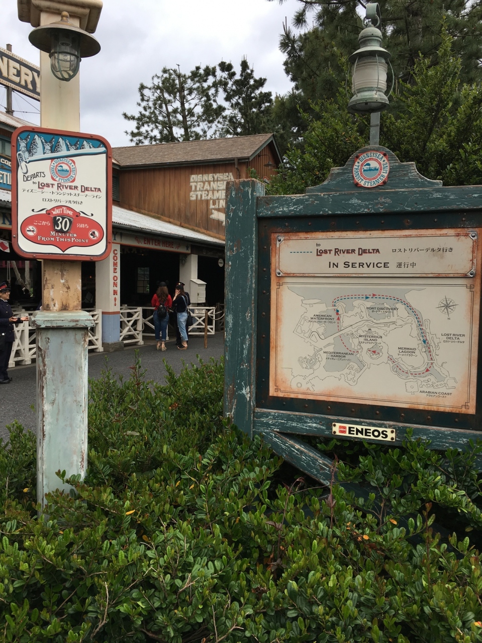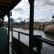 アメリカンウォーターフロントからインディジョーンズがあるロストリバーデルタまでスチーマーラインに乗って移動しました。ストームライダーの場所に差し掛かるとニモアンドフレンズシーライダーの説明に変わっていました。