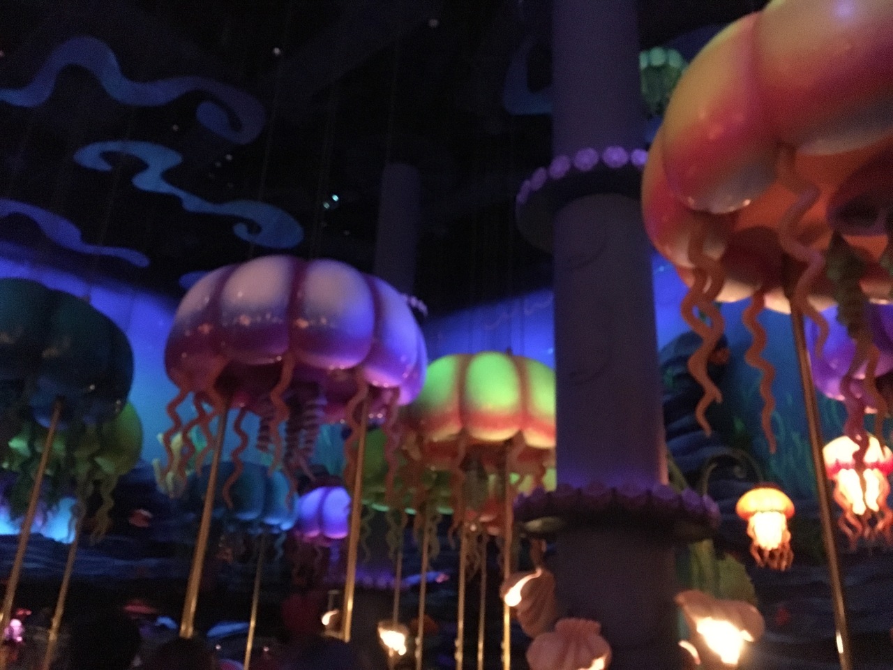 マーメイドラグーンにある上下に動くアトラクションです。2人乗りです。お子様でも安心して乗れます。高く上がるのでマーメイドラグーン内がよく見えました。週末の午前中で20分くらいとのことでしたが、実際そんなに待たずに乗れました。