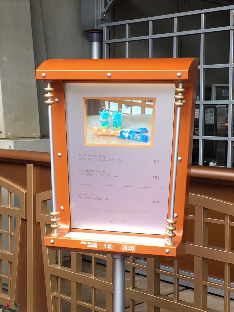 週末の午前中に利用しました。今回は中のレストランではなく、外のテラス席にあるテイクアウトの利用です。ニモアンドフレンズシーライダーがオープンして、それを記念し新しいメニューがこちらのお店限定で発売されていため15分くらい並びました。ディープシーおすすめです。