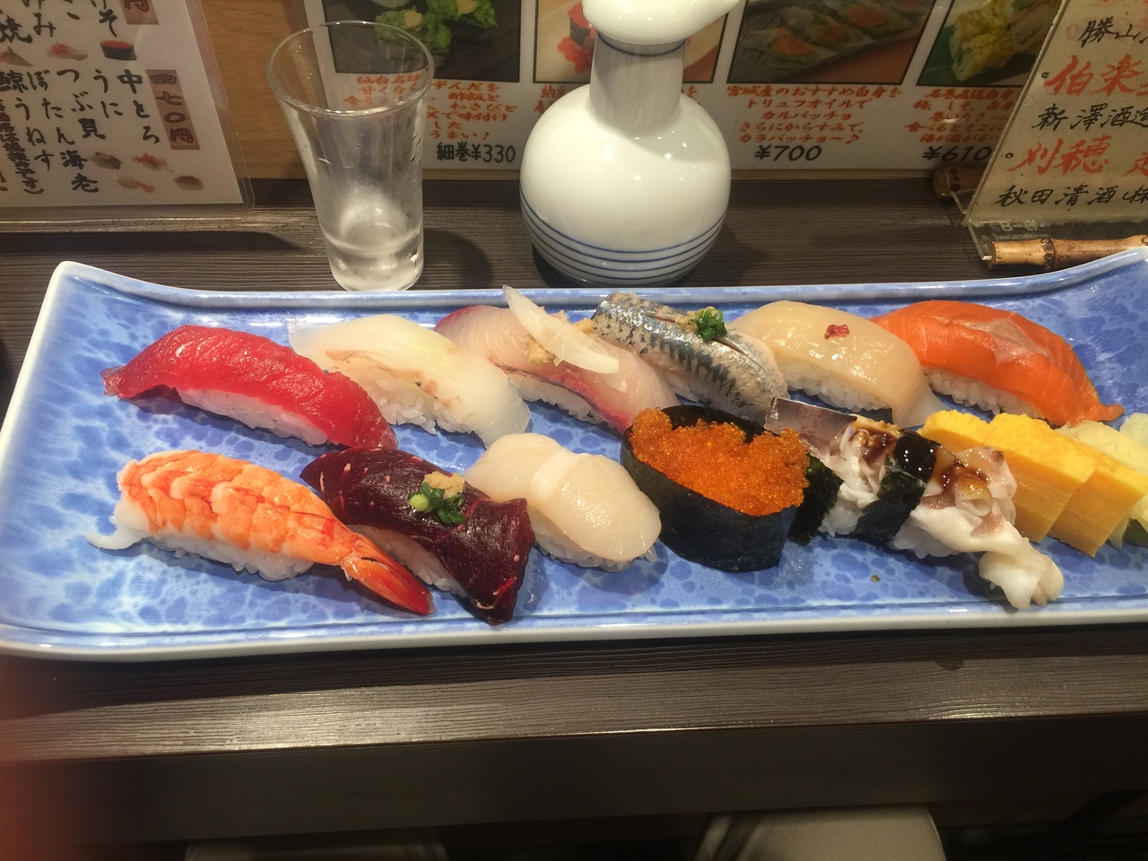 新幹線待ちで時間があったので、牛タンと寿司屋しかないレストラン街をぶらぶらしていると急に寿司が食べたくなり、ランチメニューが豊富だったので利用。