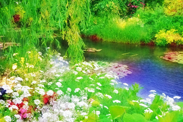 この「睡蓮の庭」は、フランスの印象派画家クロード・モネが愛したノルマンディーの ”ジヴェルニーの庭”、モネ晩年の大作 ”睡蓮” にインスピレーションを得て造園されたのだそうです。