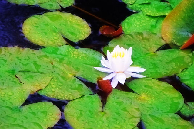 この日は雨だったので、しっとりとうるおった薔薇や睡蓮を見ることができました。
