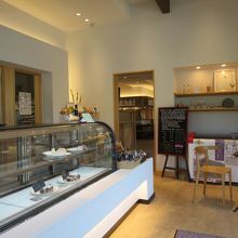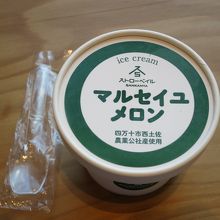ショーケースには生ケーキが売られており、イートインコーナーで無料のお茶と一緒に頂けます。他にオリジナルアイスクリームがあります。マルセイユメロン、ほおずき、みそっかす(味噌&粕)があります。変わった味は苦手なのでメロンを購入。果肉の入ったアイスは一味違いました。