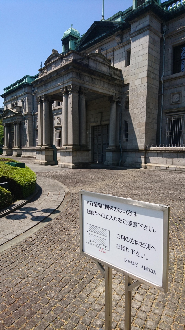 道修町のミュージアムストリートに行く途中に大江橋付近にあった日本銀行大阪支店の建物は、すごい迫力があり感動しました。