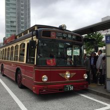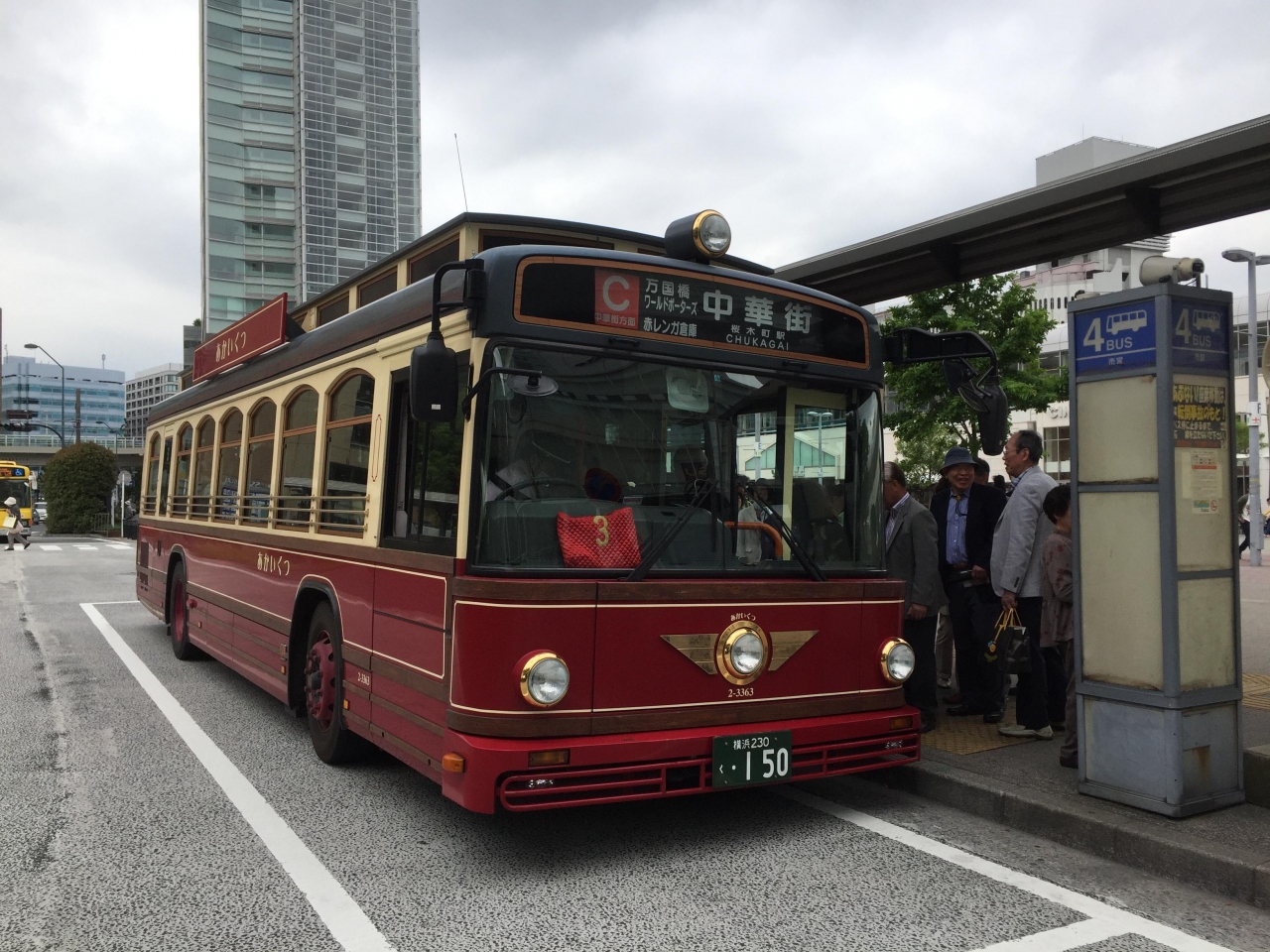 桜木町駅から中華街・元町ルートに乗車。日本大通り、中華街、元町、山下公園、馬車道などを通って、また桜木町駅に戻ってきます。1時間に3、4便が運行していて、運賃は220円です。えっ、以前はこんなにしたっけかなと。多分値上がりしたと思います。一応SUICAなどのIC系が使えて、その場合は216円と、気持ち程度ですが割安になります。観光用のバスなので、車両はそれなりに造っていて、存在も目立ってました。それにしても、人気があって、混んでますね。特に団体さんと一緒になったら、車内は大賑わい、ちょっと大変です。