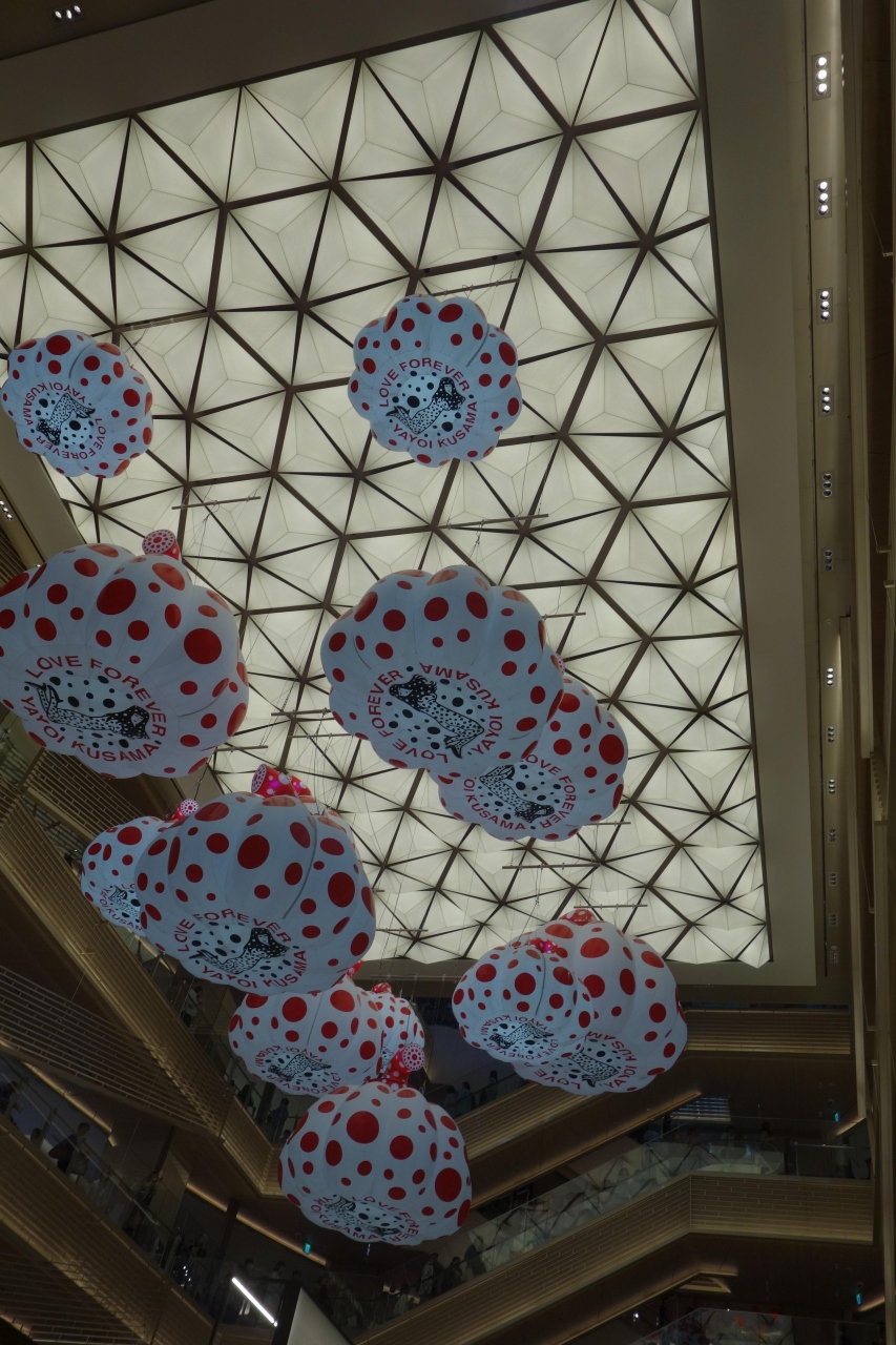 草間弥生さんのオブジェもあり皆写真を撮っていました。