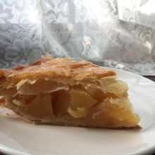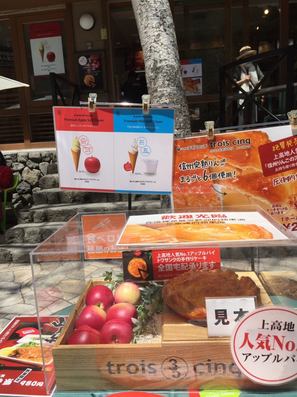 河童橋のそばにあるアップルパイが有名なお店。その場で食べることもできるし、丸ごと6個のリンゴがゴロゴロ入ったホールのアップルパイはお持ち帰り可能でお土産に最適。大きくてボリュームがあります。甘さ控えめ。120円で保冷パックに入れてくれます。予約も可能なので、帰りのバスの時刻に合わせて料金前払いで予約している方も多かったです。上高地バスターミナルから10分程度の距離です。