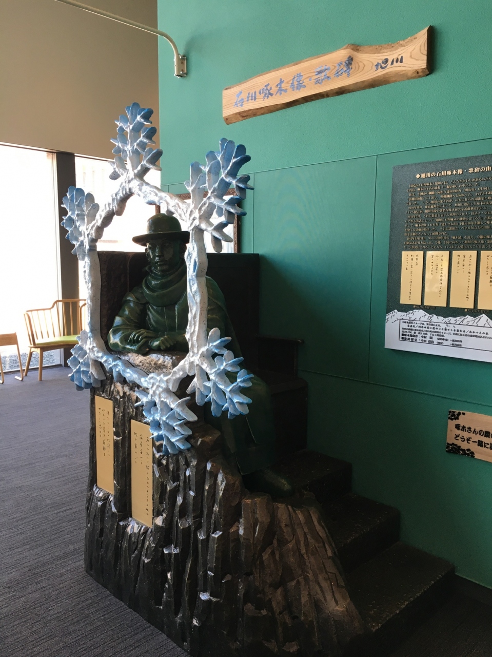 旭川観光物産情報センターの中に歌碑がありました。旭川観光物産情報センターは旭川駅と同じ建物にあり、簡単に訪れる事が出来ます。センターにはカウンターテーブルと椅子があり、休憩が出来ます。またラーメンなどの軽食をとる事の出来るスペースもあり、石川啄木さんの歌碑をみるついでに訪れてみるのも良いかと思います。