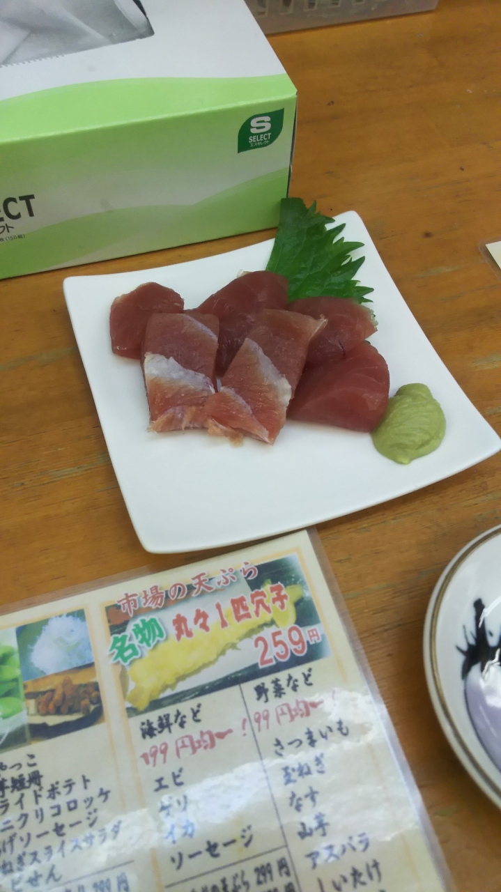 京橋駅からすぐの立ち飲み屋さんです。こちらはまぐろのメニューが多彩で、刺身も赤身、脳天など、カツやから揚げもあります。個人的にはクジラの紅白お造りが一番気に入っています。地元ではクジラがあまりないのでここに来ると必ず注文しますが品切れも多いです。