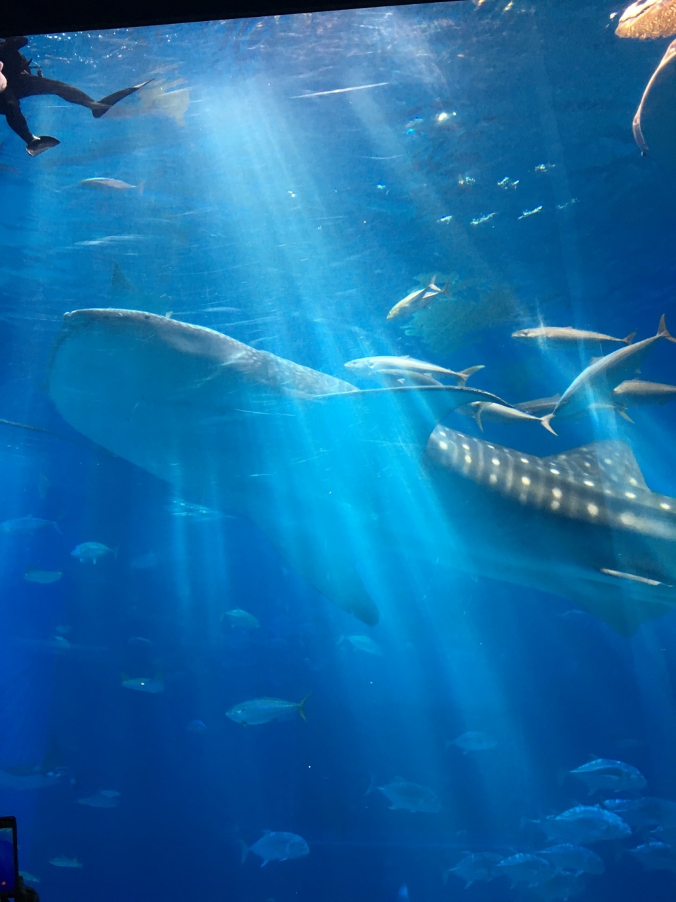初めて美ら海水族館に行きました。大きな公園の中に建物があり、とても綺麗で見応えのある施設です。ただ建物と雰囲気はとても良い感じなのですが、お魚さん達の展示がちょっと物足りない感じがしました。ジンベイザメやマンタがゆったりと泳いでいるのは、迫力がありましたが、スピード感を感じさせる動物やお魚さんも見たかったかなぁと思いました。