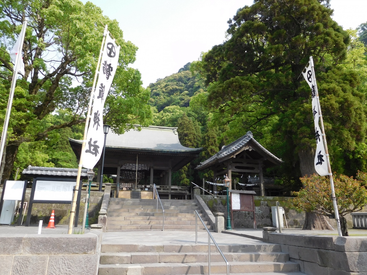 仙巌園の駐車場に車を停めた後、仙巌園の入口に向かう途中に、島津歴代当主とその家族たちが祀られている「鶴嶺神社」があったので、お参りをしました。心優しい美人であった「亀寿姫」も御祭神の一人で、お参りをすれば、身も心も美しくなれると伝えられているようです。ほとんど参拝客がいなく、ひっそりとした雰囲気でした。
